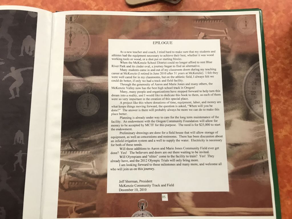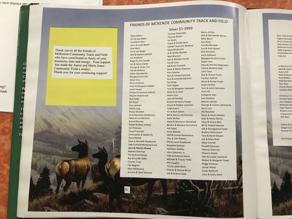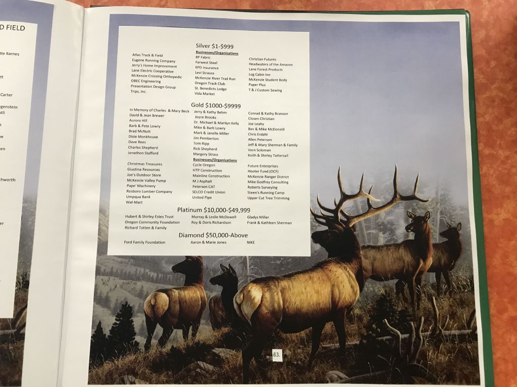 We would also like to thank the Walterville Grange, the McKenzie/Vida Community Center, the Upper McKenzie Community Center, the McKenzie River Inn, and the McKenzie General Store.