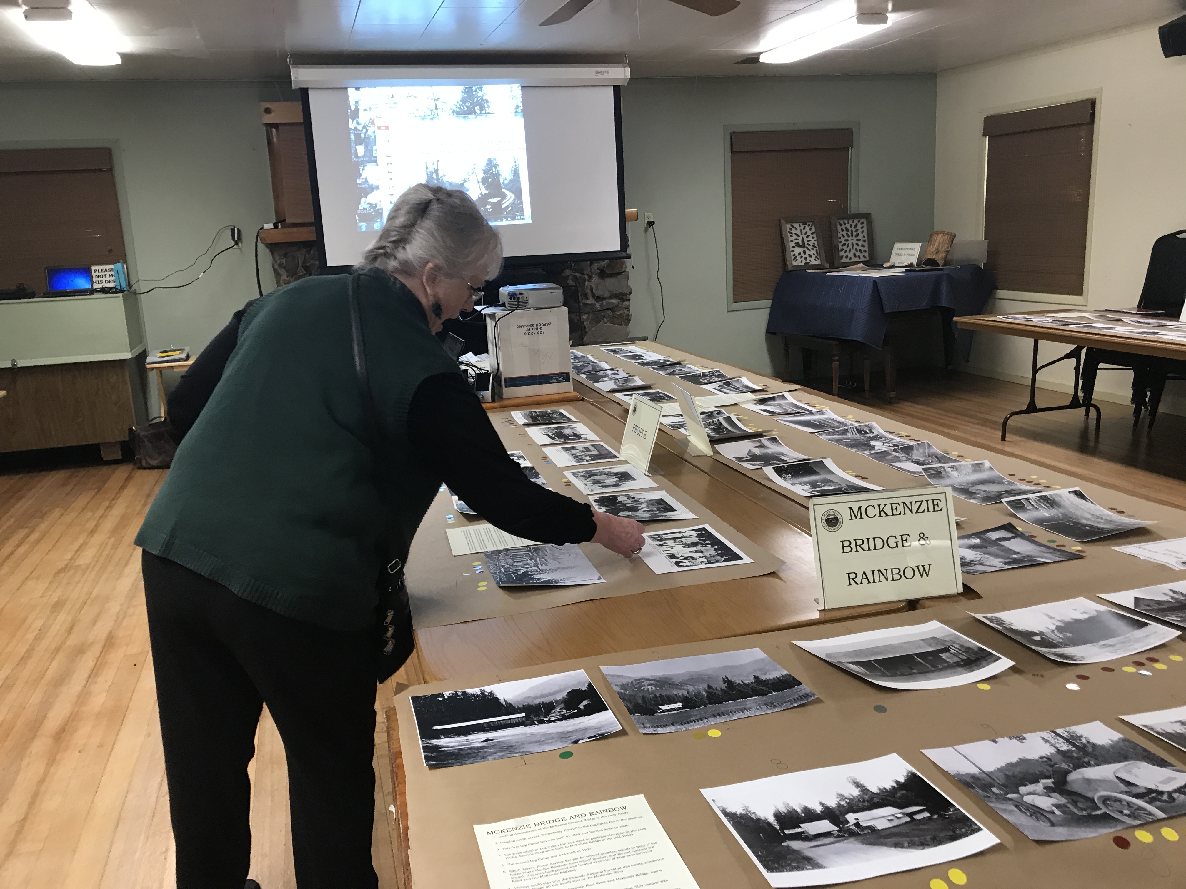 Marilyn Cross wrote the main grant for the project. The Willamette Valley Visitors Association generously awarded the McKenzie Community Development Corporation the funds we needed to organize, collect, design, print, and hang up 37 history panels that are three feet by five feet. The idea, at least in part, came from history panels on the McKenzie Bridge General Store. She also worked tirelessly and showed up and ran every team meeting. She picked her team and give each person a role to play. Without her leadership, this project would not have happened.